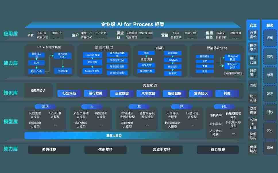 端到端的一站式AI工作空间深度融合了从企业战略规划到日常经营的全流程业务板块,,定向解决车企内部领域多、、、部门多、、链条长、、、、场景碎片化等难题,,,,支持车企快速构建以AI为核心的生产力写作体系,,,,实现任务执行与AI能力的无缝集成与交互